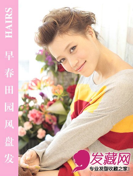 只需要简单的几步就能完成这款田园风的盘发造型。