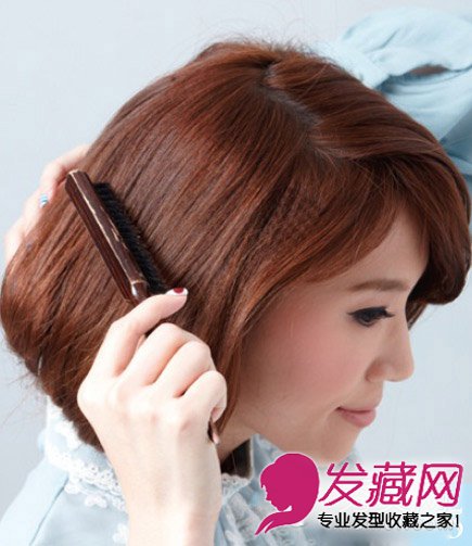 step5:头发全部固定好用,用鬃毛梳将表面梳顺