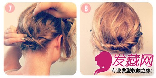 STEP 4 右部分头发逆时针扭转成股状用发夹固定,固定好的头发如图所示。