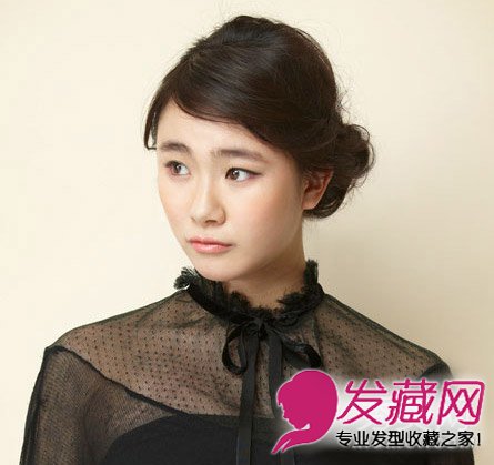 斜刘海轻盈修颜,扭转造型的发髻尽显别致感,与优雅的斜刘海搭配在一起,提升好感度。