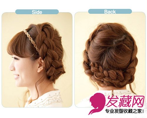 麻花辫纹理清晰可见,头箍提升淑女气质,后面看更是充满希腊风情,也有点韩式