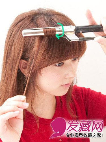 step2:用卷发棒烫卷发丝。