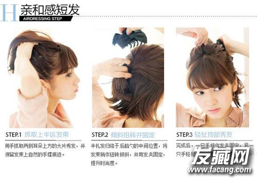 将卷翘的短发打造成半扎发造型,露出耳朵看上去更清爽干练,背后用黑色蝴蝶结发夹固定点缀,低调优雅,柔情似水的职业女性才是霸道总裁最爱!