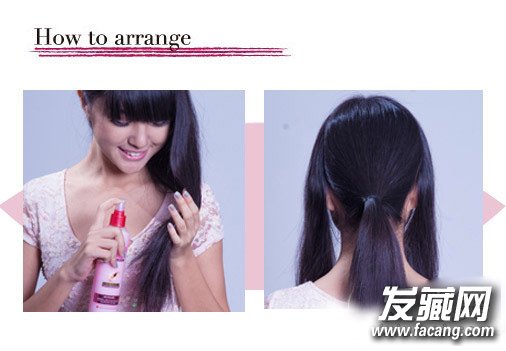 step2:在左右两侧各留出一束头发后将剩下的头发绑成马尾。
