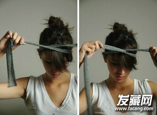 Step2 从额头前面绕过,然后两根绳子缠绕一下。