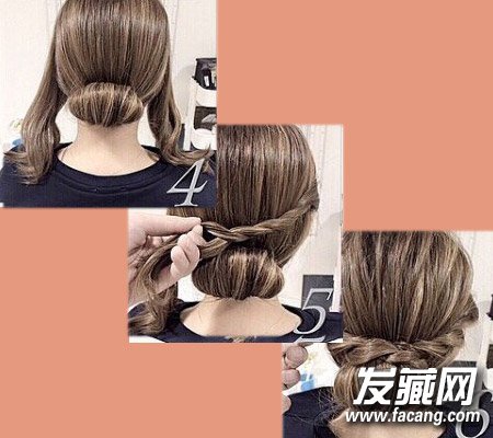 2、卷好之后笃定,再将两边的头发编成麻花辫,交叉固定在盘发的发髻上。