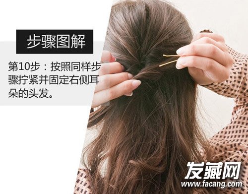 第10步:按照同样步骤拧紧并固定右侧耳朵的头发。