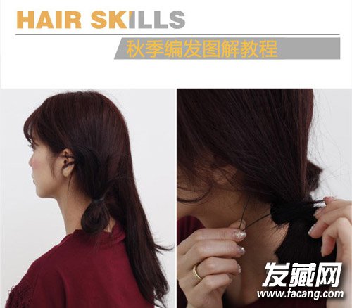 2.为了遮住橡皮圈,将发尾包裹住橡皮圈。