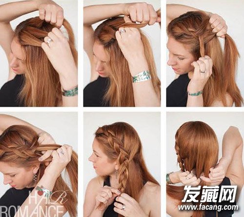 开始编三股辫,每编一股就从旁边加入一股头发。