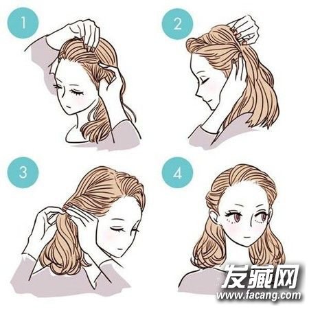 适合头发稍微短一点或是有刘海的妹子,从刘海开始进行编发,向后拧转成半束发。