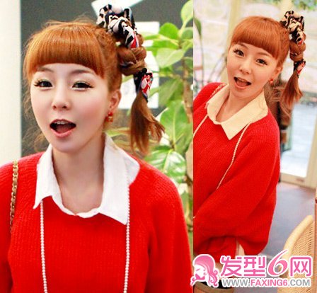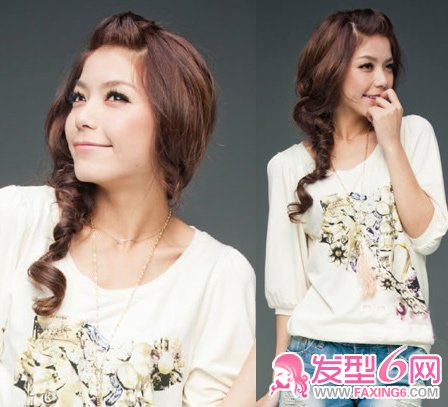 独具一格的麻花辫能让你与众不同,童趣十足哦——将印花方巾固定在耳后的发辫根部,将头发分成两股后与缎带一起按照编麻花辫的方法变成松松的辫子,让方巾穿插于麻花辫中。非常适合头发发量较少的MM哦!