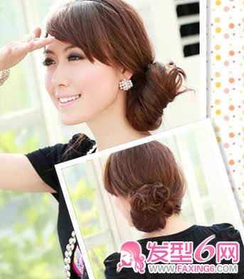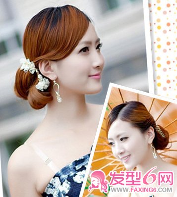 这款也算是比较正式的小盘发,刘海分的很明朗,这样的发型特别有淑女温婉气质,复古式的卷度搭配俏皮色的发饰点缀让整个发型又有活泼的元素,,再搭配一款青花印花的吊带裙子,打着古代竹伞,漫步西子湖畔,咋一看,绝对以为是白素贞和小青呢!