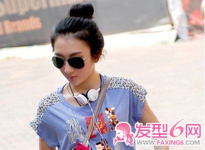 活力mm的丸子头发型,自然色的秀发团在头顶,使造型青春又活泼。