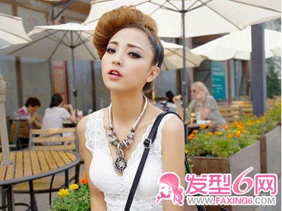 清爽时尚的名流style,大大的发髻,随便侧放头顶,大方优雅的复古气场,V形领蕾丝短衫,增添几分的性感味道。