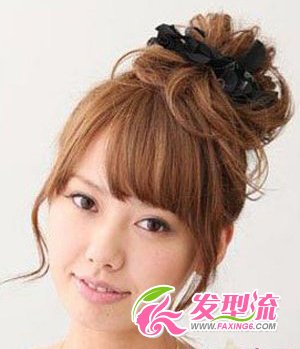 平时我们都会把马尾尾部收进发圈,让丸子头的形状更加饱满,但是把松散的发尾露出来,制造随意凌乱感,加上耳际两边的卷发,更显得别有一番可爱滋味。