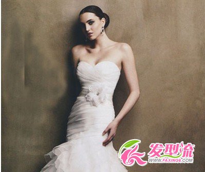 华美贵气的优雅新娘发型,贴头皮的简单造型,配搭这件鱼尾新娘婚纱,美到流口水,高挑新娘必备。
