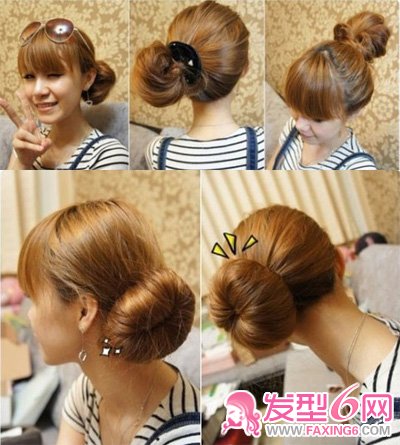 利用可爱的发饰和中分刘海也能打造出简单的丸子头,瞬间提升了青春的气息,也能巧妙的修饰了脸部的作用。清爽的丸子头,非常适合夏季,逛街、约会、聚会都很合适,简简单单,3分钟让你立刻变身美少女。