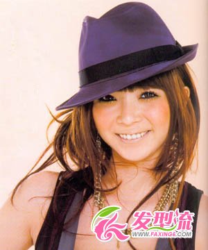 ,加上帽子的造型展现女孩酷酷的可爱。凌乱飘逸的发丝飘落在锁骨间体现出帅气奔放的感觉。粗大的金色项链突显了整体造型的酷感。
