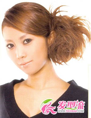 蓬松甜美的单侧扎发尽显俏皮可爱,长刘海打造出弧度和发梢的发丝融为一体,发梢扎成地束发,打造出毛躁感,形成类似花朵。这款