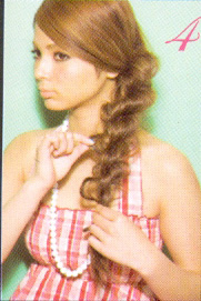 4.捏住橡皮筋扎起的发梢,用手指零星抓出一些发束,制造出松散感。梳理刘海使其自然垂下。最后装饰一款精美小饰品即可。