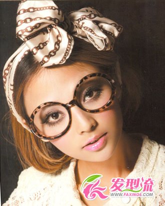的优美弧度向内包裹,更能衬托出迷人的英伦气质。丝绸奢华丝巾打造出可爱的蝴蝶结造型,让这款发型变得活力充足。大大的豹纹圆眼睛和发带相呼应,很是可爱。