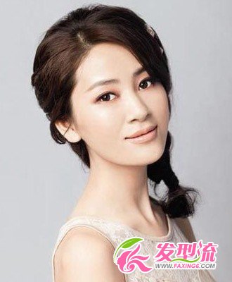 中分的刘海很自然的搭在额前,后面的头发简单编成一束,营造出自然不做作的扎发发型。然后利用小配饰稍微点缀下,就让这款简单的女生发型充满了生气。白色的背心连衣裙透露出女性柔美的一面。