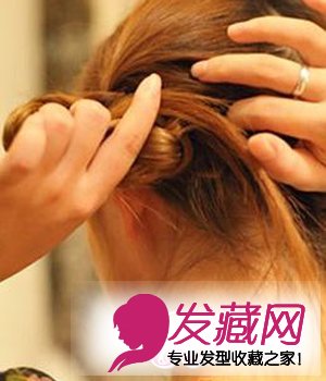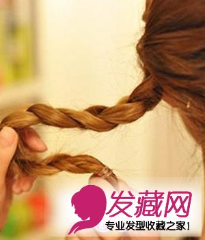 用橡皮筋绑好麻花辫,然后将辫子弄成S型,辫子根部用手掏出个洞。