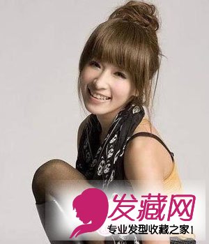 齐刘海+丸子头 经典的丸子头造型,非常适合年轻MM的盘发发型。当然了,如果想装嫩的话,那这款发型绝对是不二选择啦!高高扎起的蓬松丸子头,把小女生的俏皮和活泼个性展现到极致。再搭配萌萌的齐刘海,十分甜美可爱,让你年年十八呦!