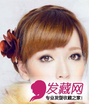 侧分刘海+花苞头 如果想更突显自己的俏皮和可爱个性,可以采用侧扎花苞头的方法。齐眉的侧分刘海,有效减少了脸颊的面积,稍稍分开的角度还可以拉长脸型的比例,尤其适合大脸型的MM。深栗色的染发颜色,尽显时尚和年轻气息。