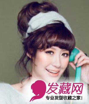 的潮流元素。刘海用内卷的设计,显得更有活力和灵动感。蓬松的大花苞头,再加个发带,更显风情和时尚范儿。