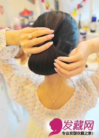 将头发再次反方向折叠塞入头发内,形成一个发包。