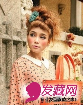 形状特别饱满的这款烫发盘发发型,将运用了夸张空气烫发型设计的发丝高高盘起,形成高位盘发,发尾的蓬松感使盘发的形状非常有味道,无刘海的设计,露出光洁的额头,蕴含丰富时尚感。