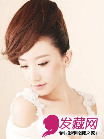 马尾变身术:在湿发上涂抹一些让头发丰盈饱满的造型产品,粗略的吹干。刘海儿处可向外卷,做云雾状刘海儿,这样可以增加
