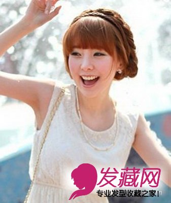用尖尾梳从两边耳际出分出少许发丝编成两个麻花辫,左边麻花辫挽到右边发梢用发夹固定好,右边的麻花辫挽到左边同样用发夹固定好,剩余的发丝盘成一个低低的发髻,一款时尚的麻花辫盘发就成型了。