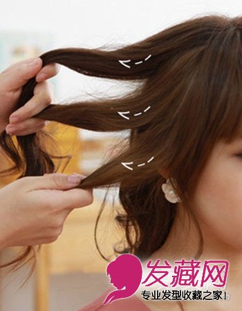 Step 3:扎鞭子,从左边的耳际抓住三股发量相同的头发。