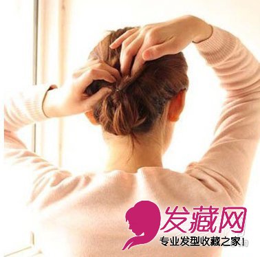 把扎好之后的麻花辫向内塞到头发的开口部分。