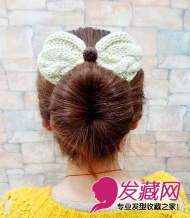 适合大脸女生的可爱丸子头盘发:可爱的丸子头,配上可爱的白色毛线蝴蝶结可爱之中尽显冬季的温暖,下面跟着小编一起来学习吧!