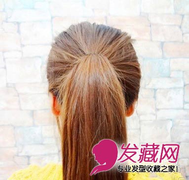 适合大脸女生的可爱丸子头盘发步骤一:首先我们把头发披散在脑后,用梳子顺理好,用皮筋扎成普通的马尾辫。