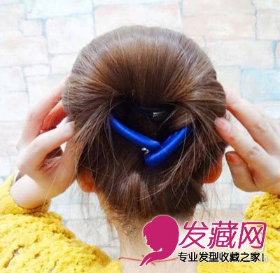 适合大脸女生的可爱丸子头盘发步骤七:扣好后,就把头发均匀的拨弄过来,聚集成一个圆形。