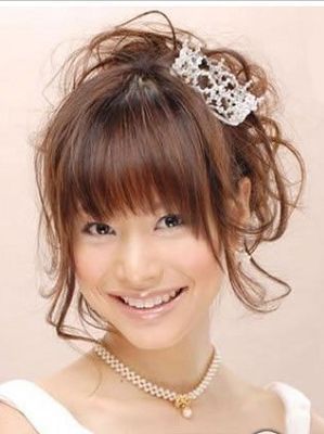 适合发型:齐刘海 +雪花形皇冠