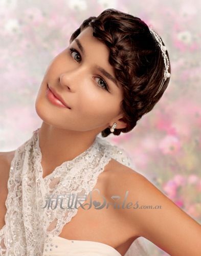 富有雕塑感的发型设计在充满古典浪漫色彩的发箍装饰下,多了几分怀旧情怀,让新娘的一颦一笑间透出古典意韵。