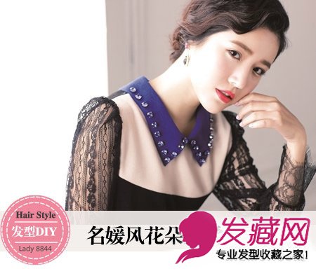 长卷发怎么扎 花朵发髻和低位马尾发型(2)