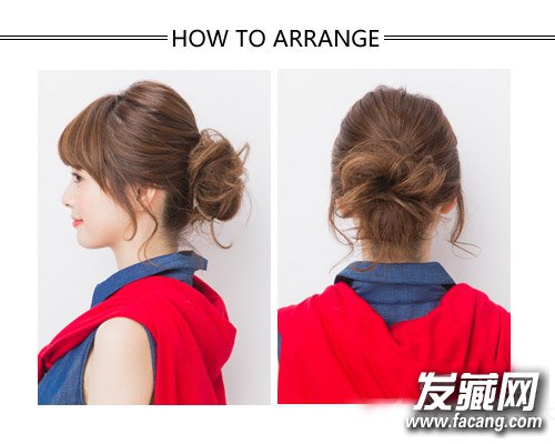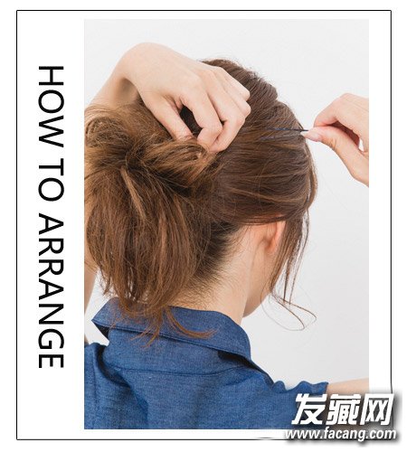 step 4:将马尾头发向内弯曲,用黑色发卡固定,打造出蓬松的花苞发髻。最后在整理一下留下的发丝与刘海就完成了。