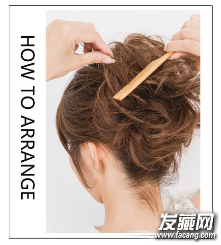 step 3:用细齿梳将发尾向内刮乱,让扭转发束变蓬松发髻,最后将刘海整理就完成了这款盘发。