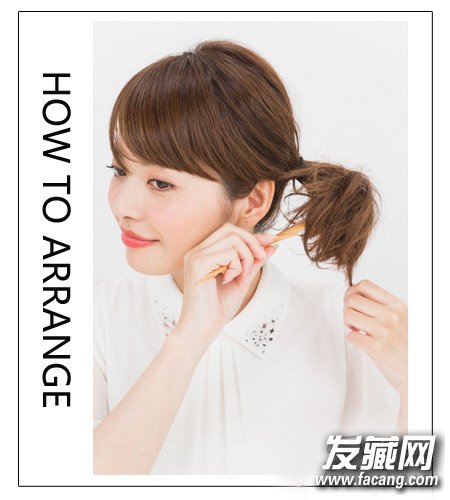 step 1:首先将头发梳理好,扎成侧边马尾造型。
