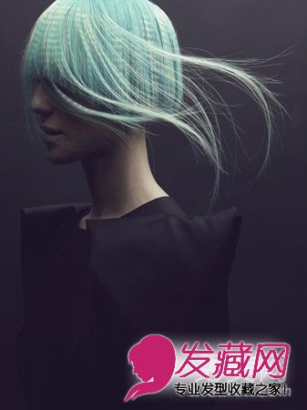 非常有艺术范的一款发型。浅青绿色配上时尚的