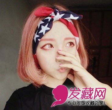 ,粉色系的染发,十分潮流抢镜,加额前五角星发箍搭配更个性抢眼。