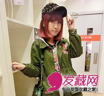 +红棕色染发,清新又时尚。齐刘海以及内扣的发尾修饰了脸型。