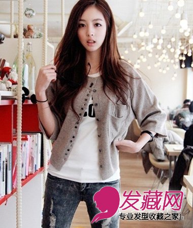 红褐色头发染发,中分的设计打理,韩范小美女。