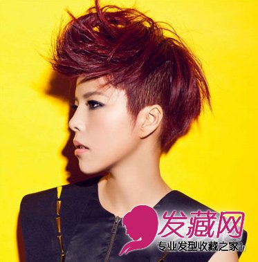 ,托起的刘海,亮丽的发色,短发搭配皮衣,酷帅十足。
